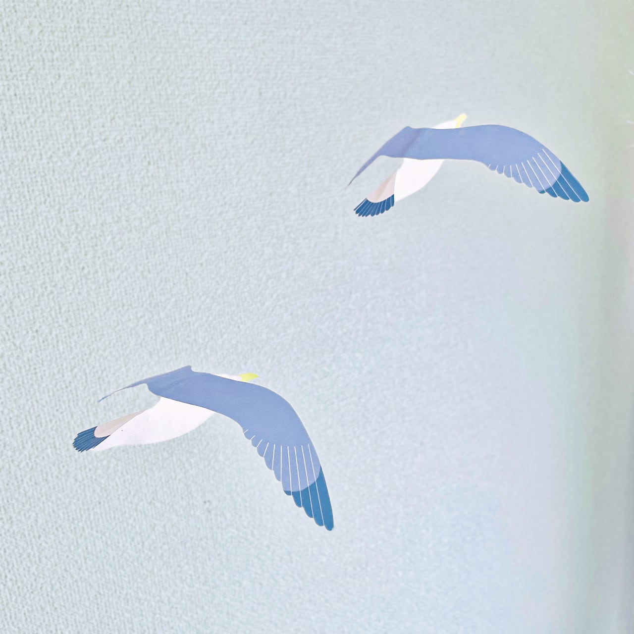 テグスが透明なので、まるで本物のカモメがお部屋の中で飛んでいるかのように、ふわりと宙に浮かんで見えます。