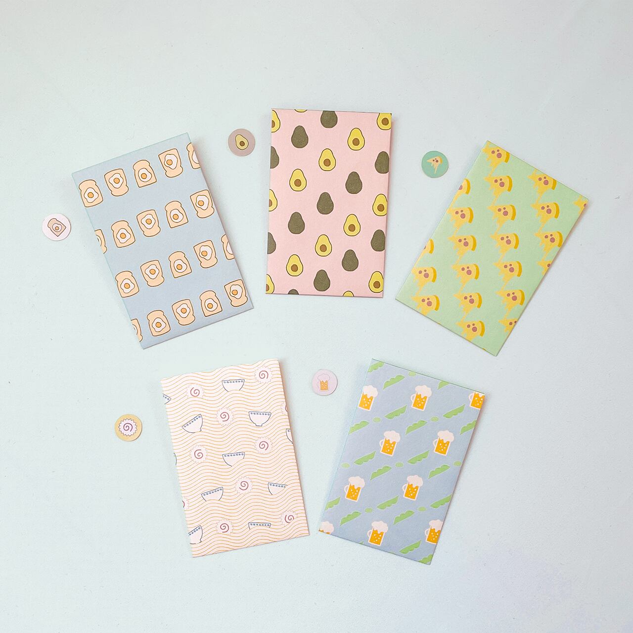 10の食べ物柄のポチ袋が、使いやすい5枚セットにリニューアルしました。