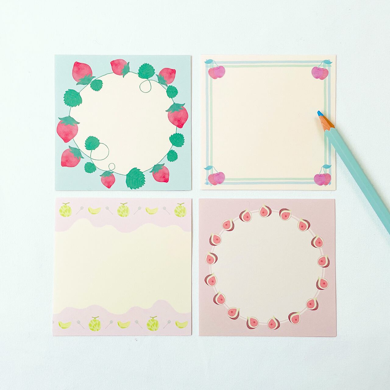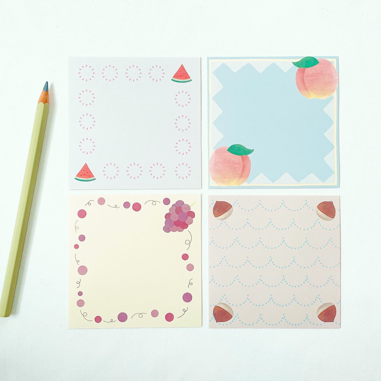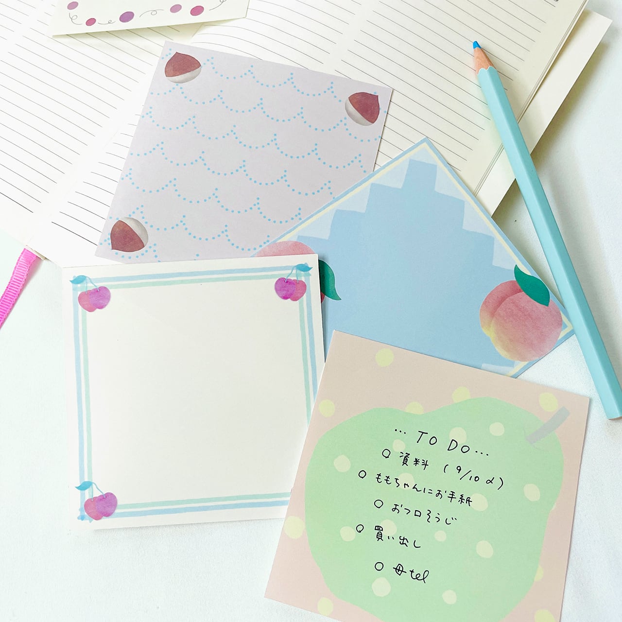 季節ごとの12の旬のフルーツを、ましかくなメモ帳につめこみました。