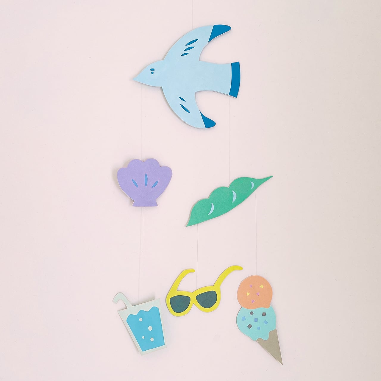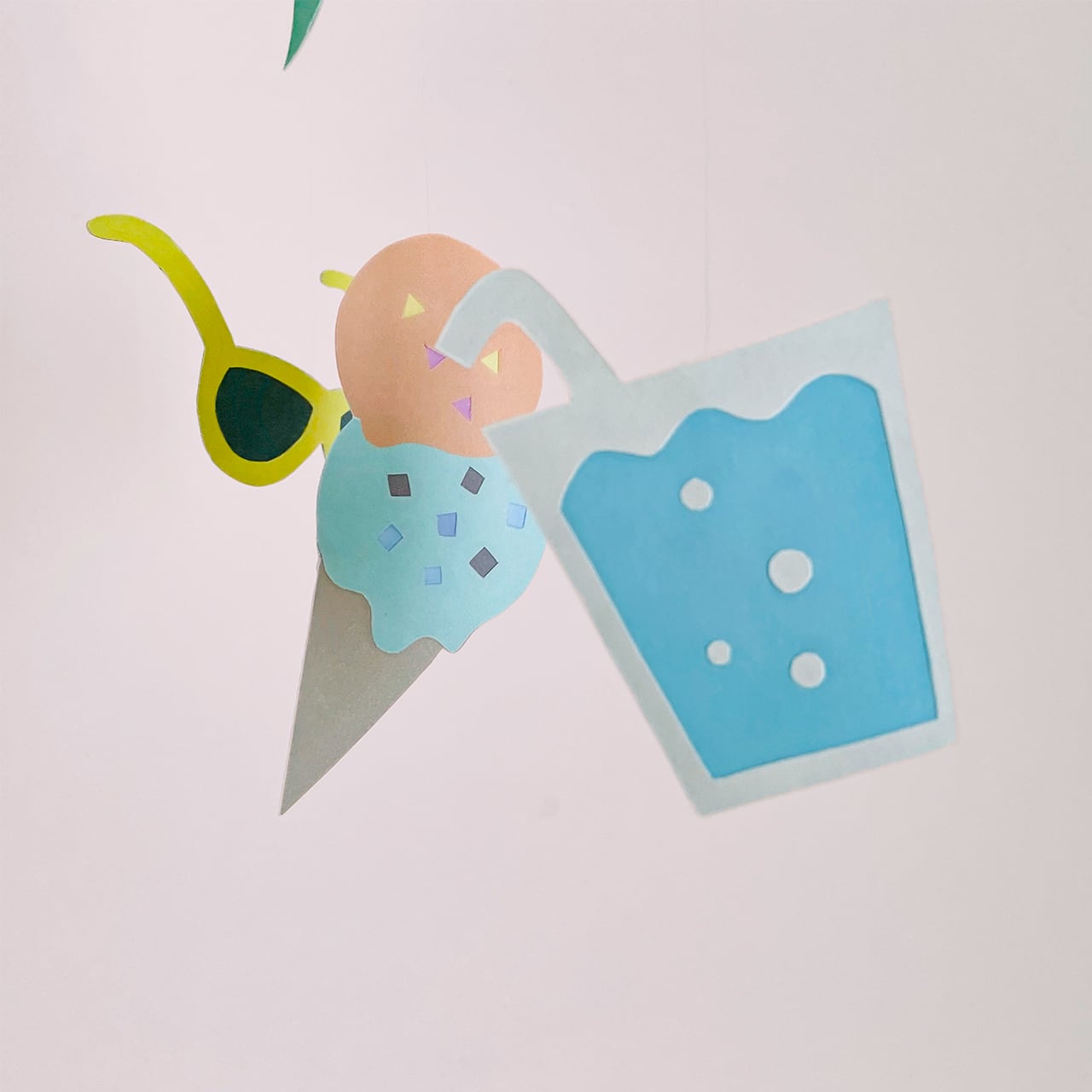 夏の風物詩たちをモビールにしました。